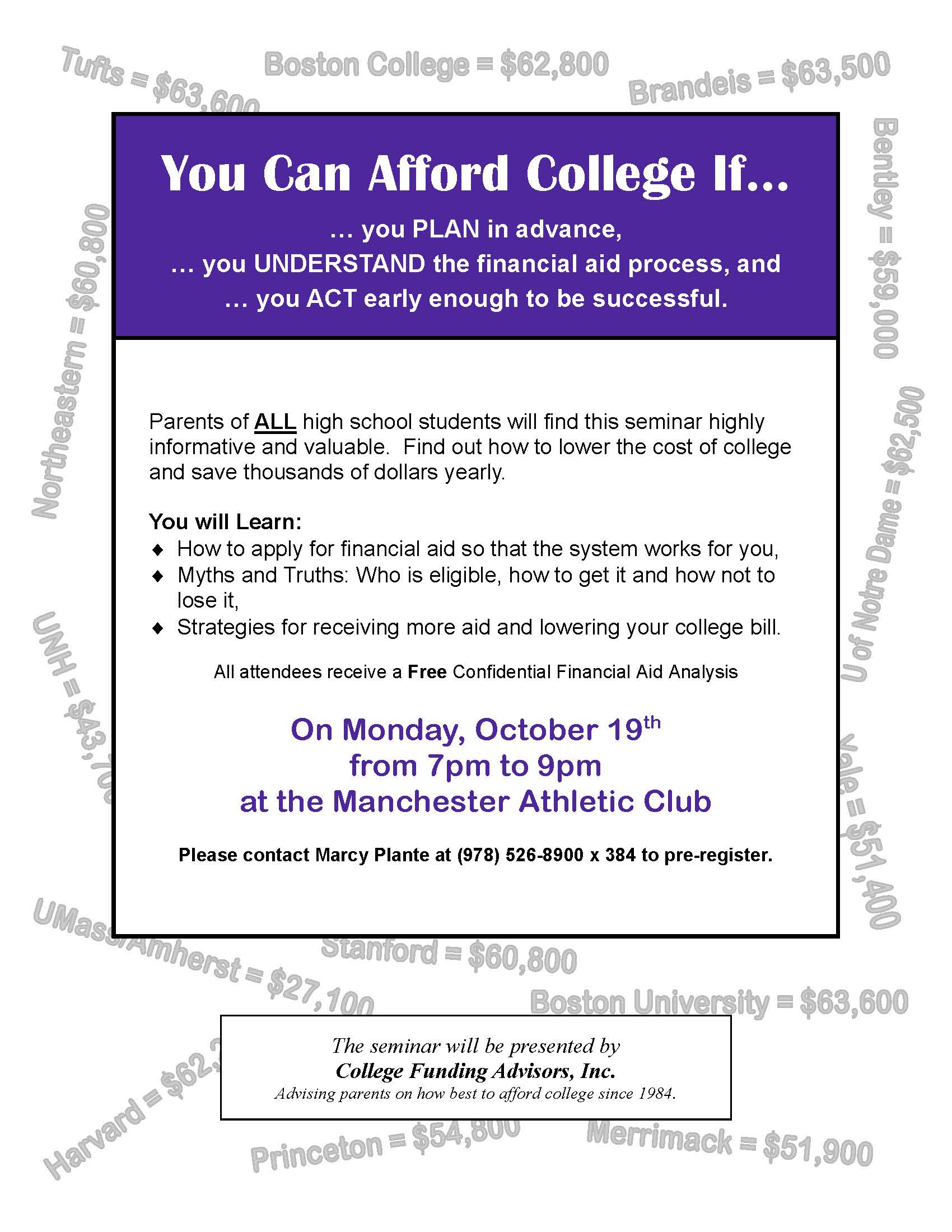 • College Funding Seminar At Manchester Athletic Club Monday September 26th