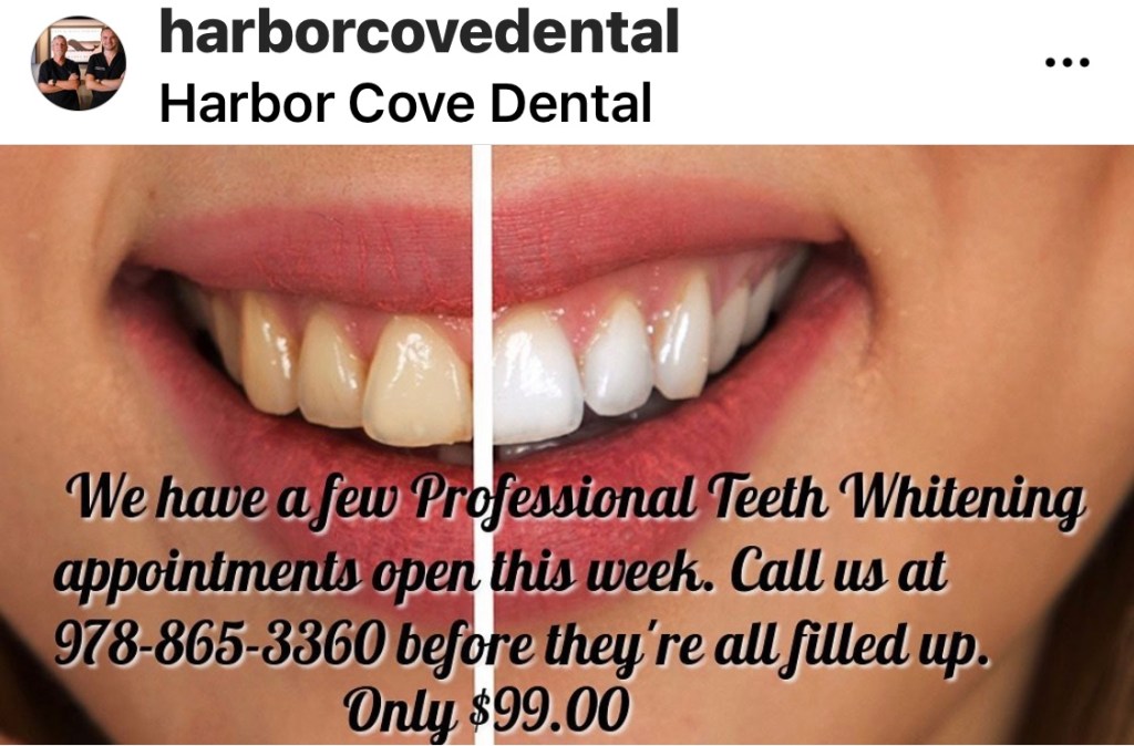 Have your teeth whitened in less than an hour. Call us to schedule at 978-865-3360