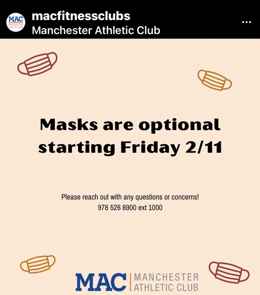 Masks Optional At Manchester Athletic Club Starting Friday 2/11