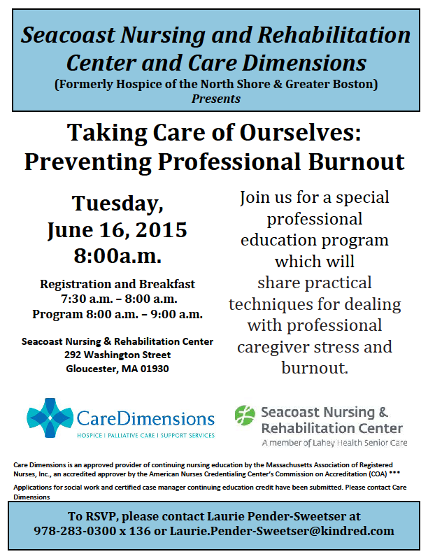 Seacoast Offers Presentation “Taking Care of Ourselves: Preventing Professional Burnout”