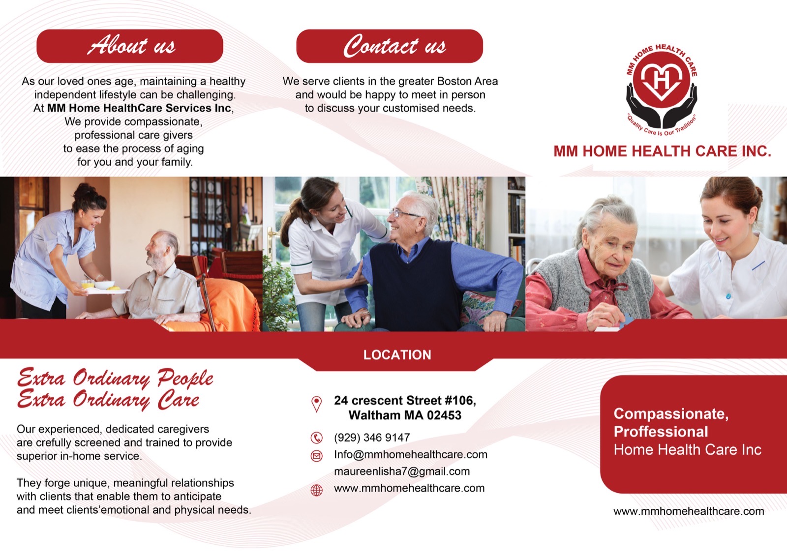 MM Home healthcare services inc, we provide quality home healthcare services to seniors and patients in the greater Boston area and Massachusetts at large.