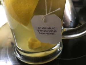 The message on my Yogi tea bag (each bad has a written positive saying or quote), gives me pause to reflect –  “An attitude of gratitude brings opportunities.”